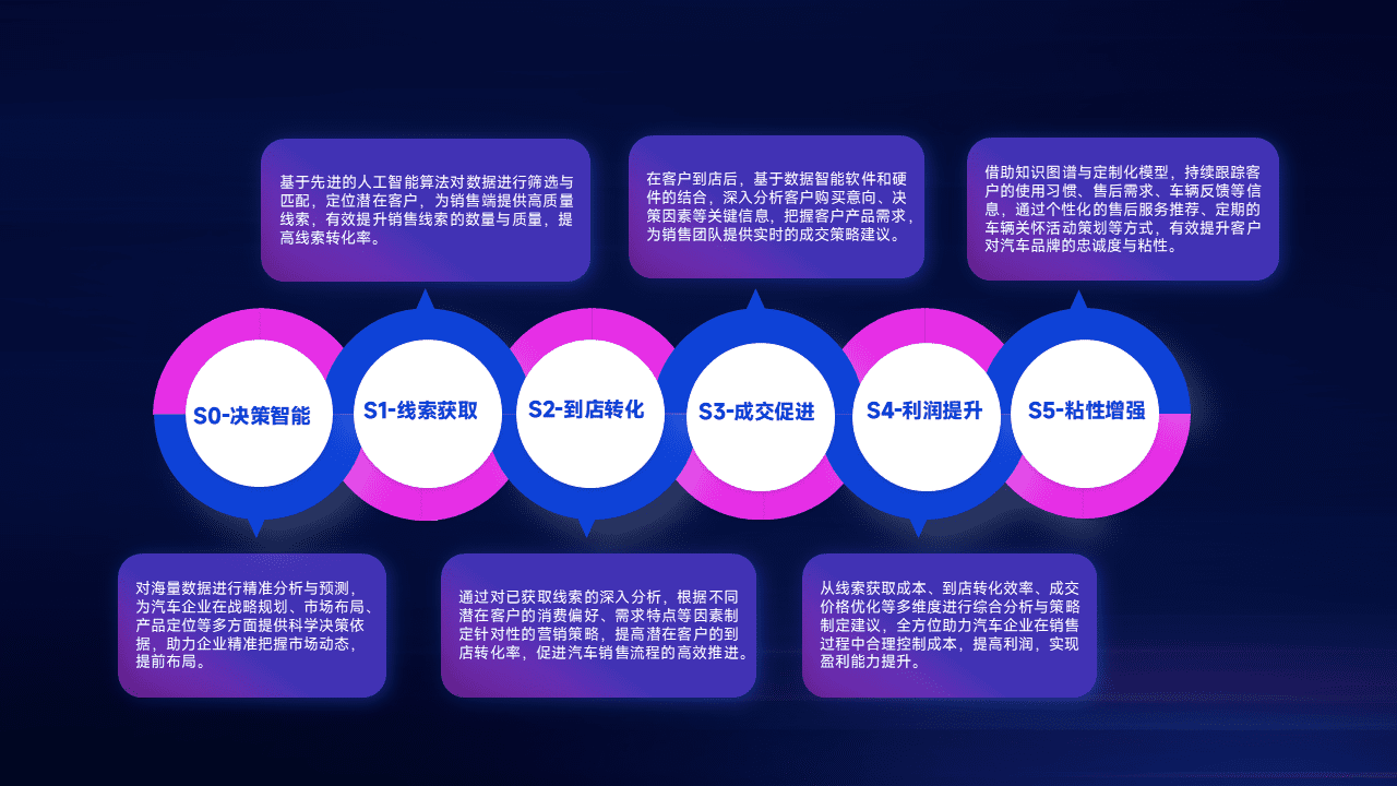 通过拓宽潜在客户来源、、、优化线索分配并提高到店转化率,,,,以增强销售效率。。。。同时,,利用线索数据不断优化分析模型,,,,有效提升转化率,,扩大营销影响力。。。